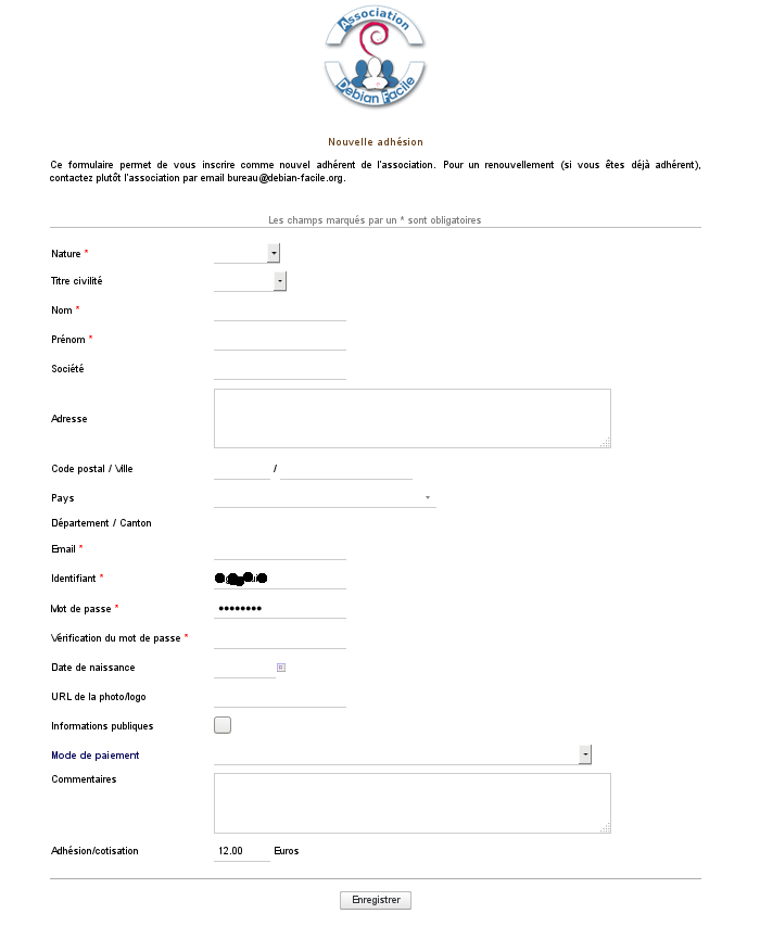 la page d’accueil pour s’auto-inscrire sur debian-facile.. :