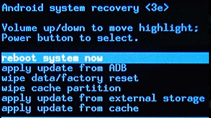 Nous voici sur le mode Recovery, pour information il existe une multitude de Recovery mais en principe ils sont tous très ressemblants. Voici un exemple de Recovery :