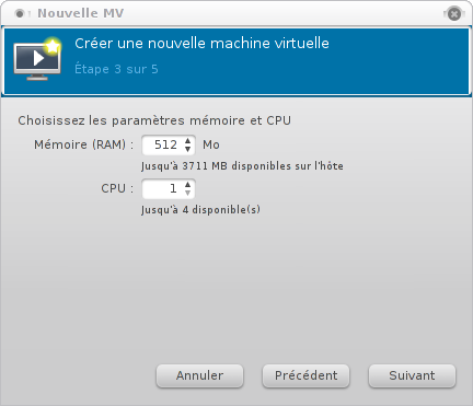 Nous allons maintenant pouvoir définir les ressources matérielles allouées à la machine virtuelle.