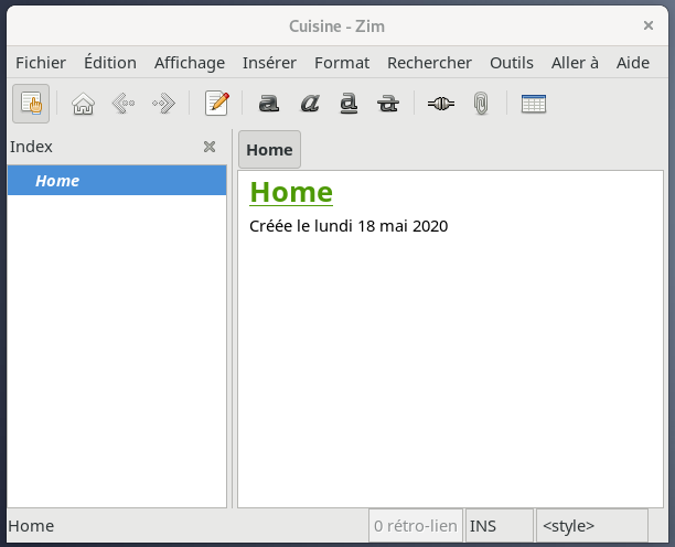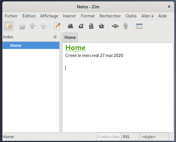 L'ouverture de zim, en graphique ou en terminal vous donne ce premier aspect :