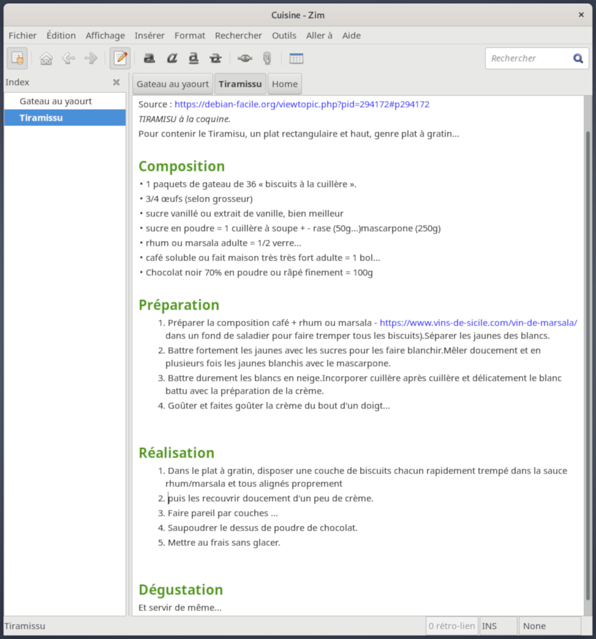 Zim est un éditeur de texte graphique utilisé pour maintenir une collection de pages wiki, des Bloc-notes.