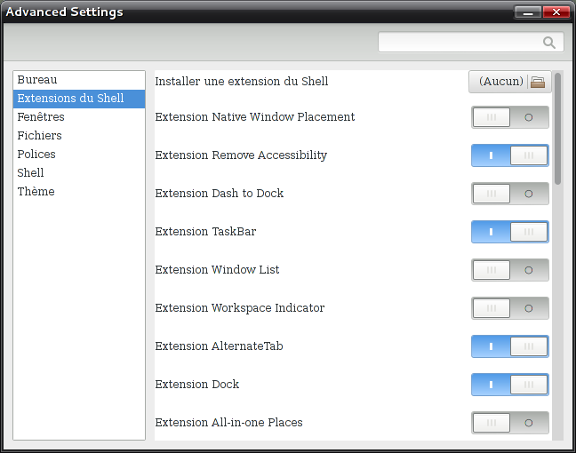 Gnome-tweak-tool9), associé à gnome-shell-extensions, est une interface graphique permettant de configurer selon vos préférences et facilement, votre Gnome Shell.