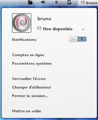 | Icônes | Sur la droite | L’habituelle zone de notification système. Elle regroupe l’accès à la gestion du volume sonore, du Bluetooth, du réseau filaire ou Wi‐Fi, de l’accessibilité, de la messagerie instantanée. |