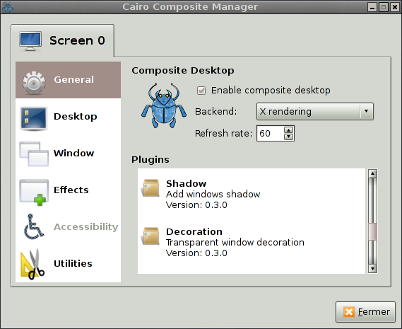 XCompMgr offre des effets satisfaisants, tout en souffrant de certains inconvénients.