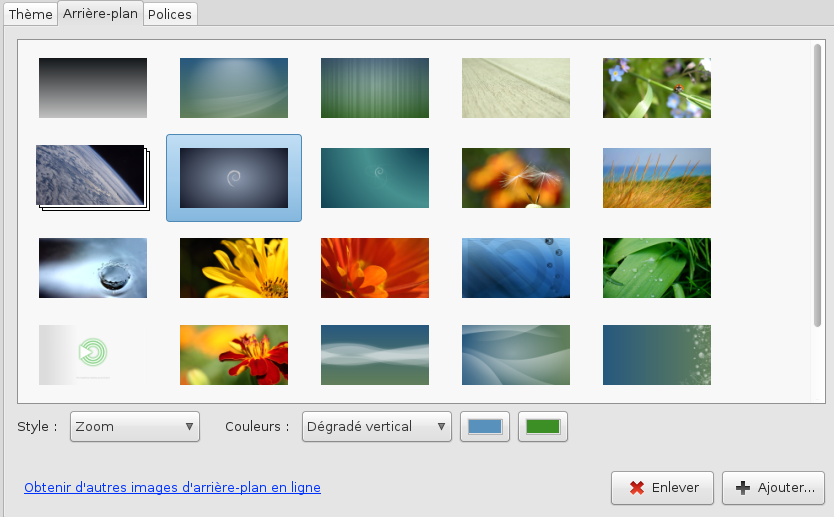 Depuis la fenêtre Préférence de l'apparence cliquons sur l'onglet Arrière-plan