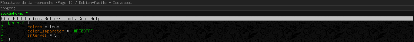 Et c'est au sein de ce fichier que tout se paramètre! Plutôt que de passer en revue les différentes sections, je vous propose mon fichier de configuration commenté (et en français s'il vous plait