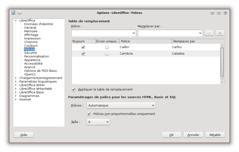 Vous aurez remarqué que nous vivons dans un monde où le logiciel Word® est très utilisé. Et bien sûr, lorsque vous recevez une lettre, un document fait avec ce logiciel, tout ne s'affiche pas correctement avec LibreOffice. Cela vient souvent du fait que les polices de Microsoft® ne sont pas présentes sur les PC/Mac équipés de Linux. Les polices installées n'ont pas forcément les mêmes caractéristiques.