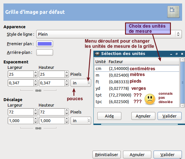 Et vous pourrez manipulez tous les réglages de la grille en conservant actifs ceux déterminés dans les Préférences pour le prochain fichier à ouvrir.
