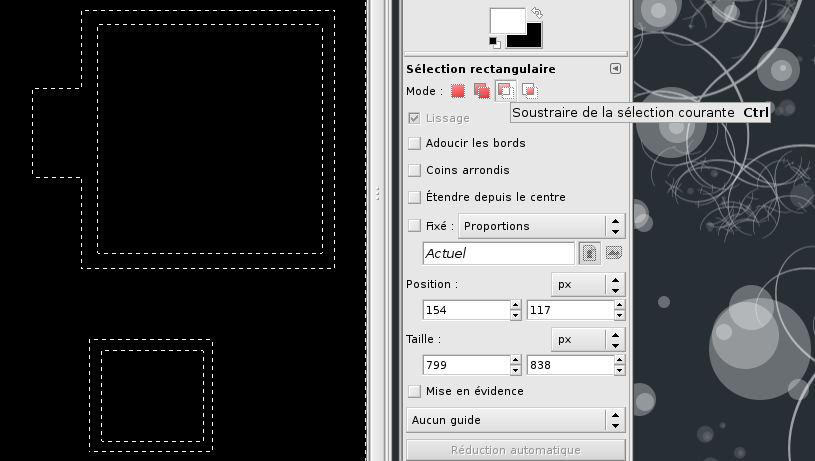 Nous pouvons ajouter autant de sélections que nous désirons, celles-ci pouvant se combiner les unes aux autres quel que soit l'Outil de sélection choisi, pourvu qu'il reste dans le même mode Ajout :.