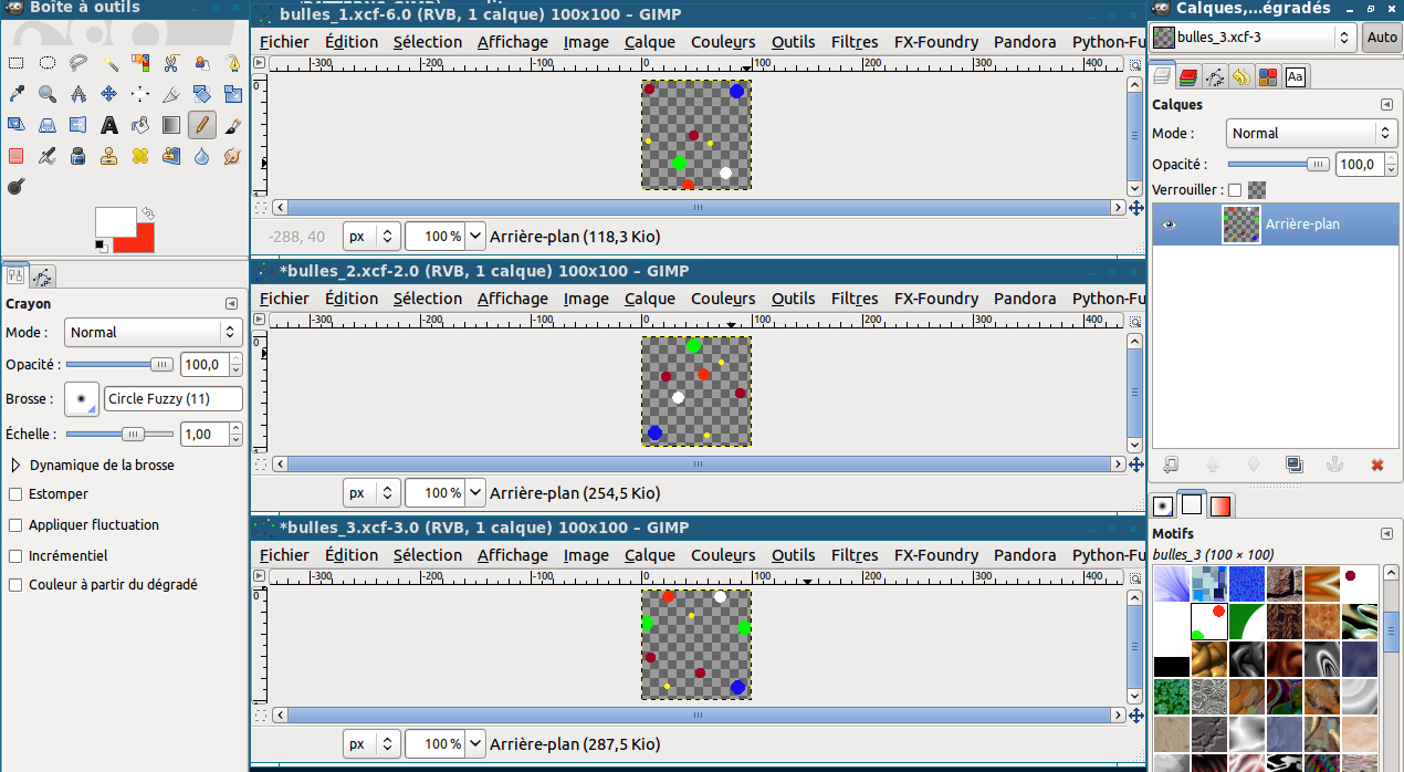 Vous pouvez en plus sauvegarder vos images en .xcf si vous le désirez mais ce n'est pas obligatoire car vos motifs sont déjà sauvegardés.