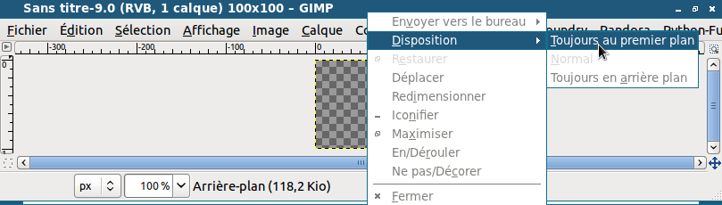 Créer une nouvelle image 100 x 100 pixels avec un fond transparent.