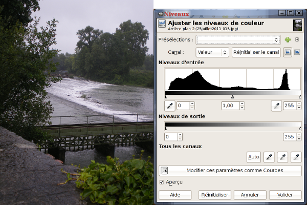 Votre photo est fade ou trop sombre, ouvrez l'outil Niveaux via le menu: