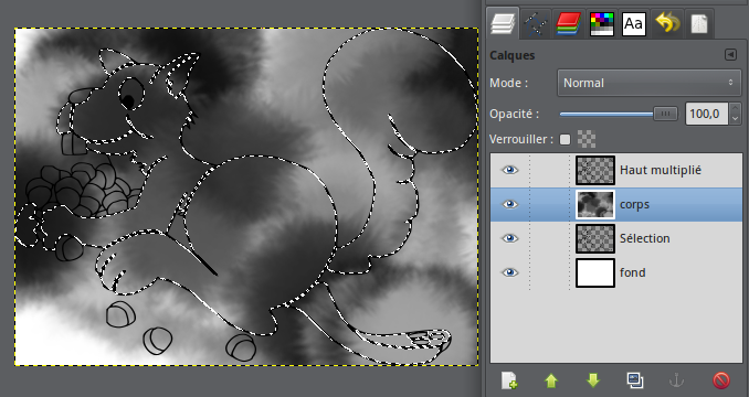 Créez un nouveau calque transparent au-dessus de votre calque Sélection et nommez-le “corps”