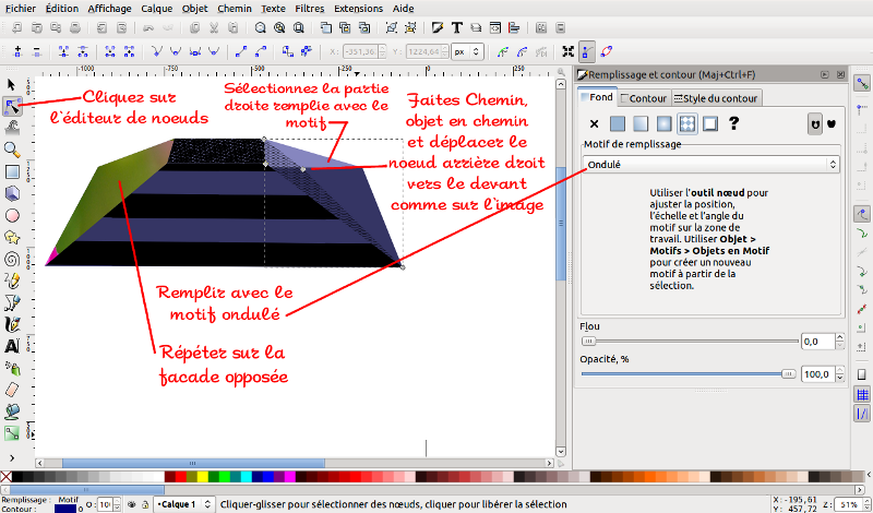 Maintenant que vous savez créer des motifs, nous allons remplir un nouvel objet avec ce motif.