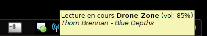 Le survol de l'icône affiche dans l'info-bulle le titre en cours de lecture :