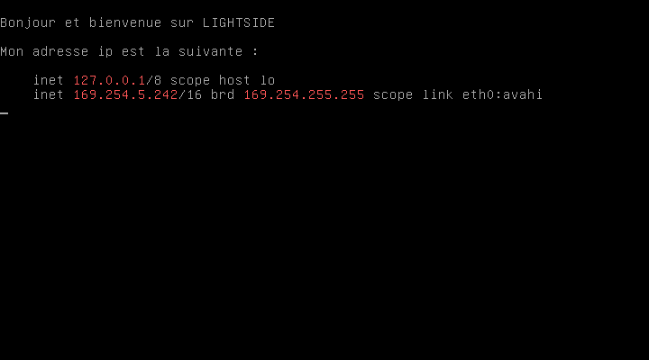 Et voilà ! un petit reboot et à la place de l’écran de login habituel sur le tty1 vous verrez l'exécution de votre script