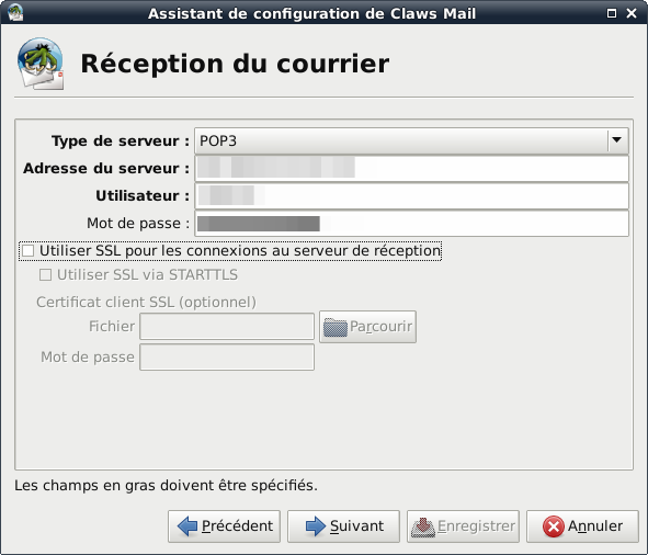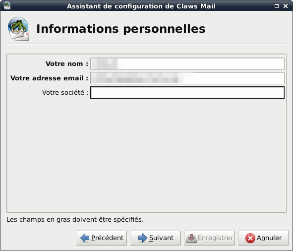Lors du premier lancement, Claws Mail propose un assistant de configuration pour se connecter à sa messagerie.