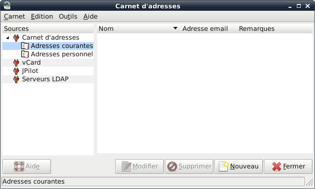 Le carnet d'adresses est accessible depuis le menu : Outils > Carnet d'adressses (Maj+Ctrl+A).
