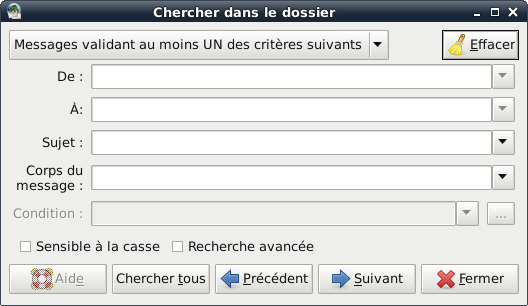 Il est possible d'ajouter des dossiers et sous-dossiers supplémentaires pour organiser les courriels de votre travail, de votre association, etc. Chaque dossier par défaut (inbox, sent, draft, queue et trash), et ceux ajoutés par vos soins, sont créés comme répertoires sur votre disque.