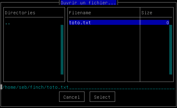 | Alt+Q | quitter Finch (Ctrl+C fonctionne également, comme pour n'importe quelle commande lancée dans un terminal) |