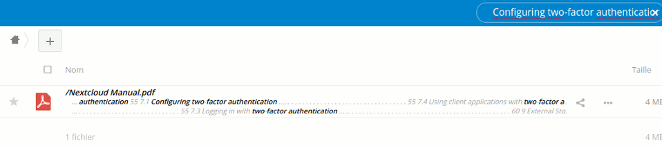 # Et on redémarre Apa... Non Solr ! systemctl restart solr # Et on relance une indexation pour tester. sudo -u www-data /var/www/nuage/occ nextant:index
