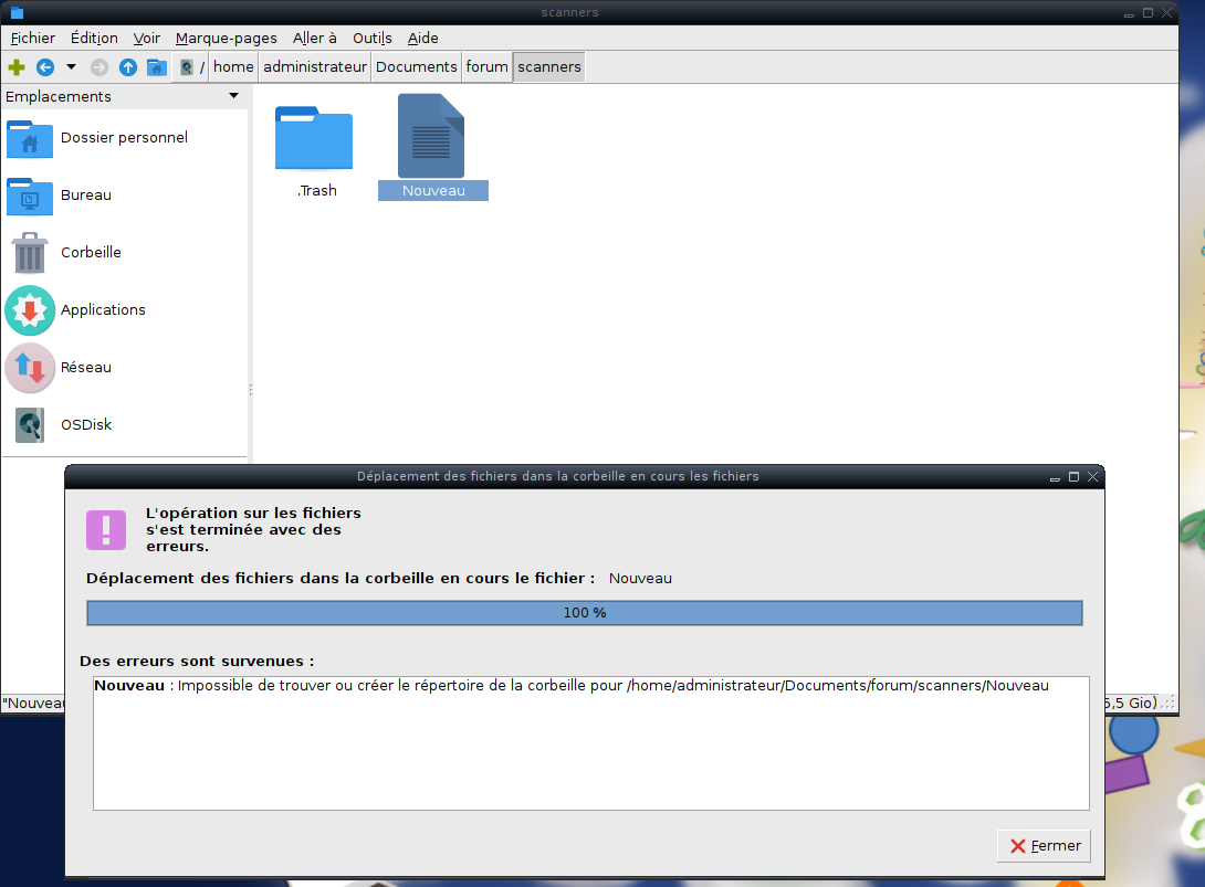 Ainsi lors de la suppression d'un fichier, PCManFM tente de créer un dossier .Trash-xxxx dans le dossier partagé pour y déplacer le fichier concerné.