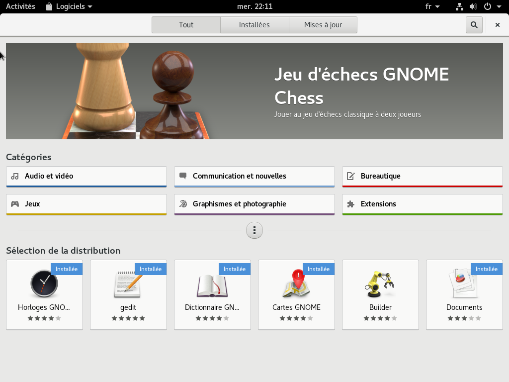 Logiciels (ou gnome-software) permet l'installation facile de nouveaux logiciels via une interface graphique.
