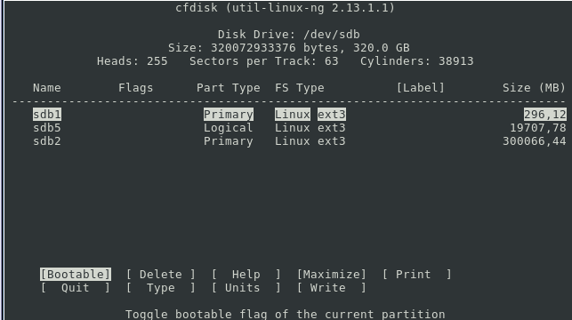 cfdisk sdb