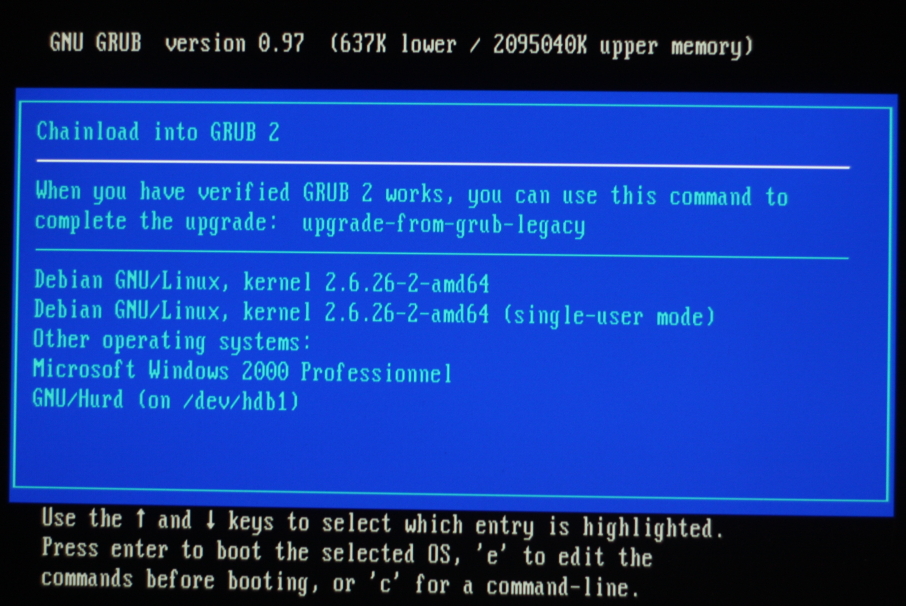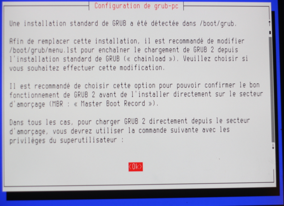 Prenons l'exemple de Debian, où GRUB 2 est proposé à l'installation, mais GRUB est encore le choix par défaut.