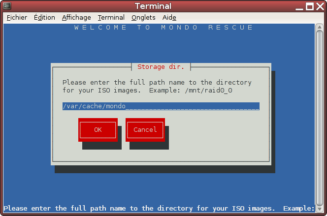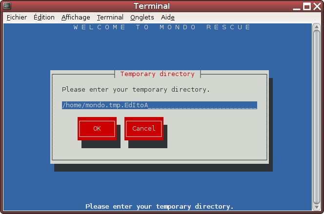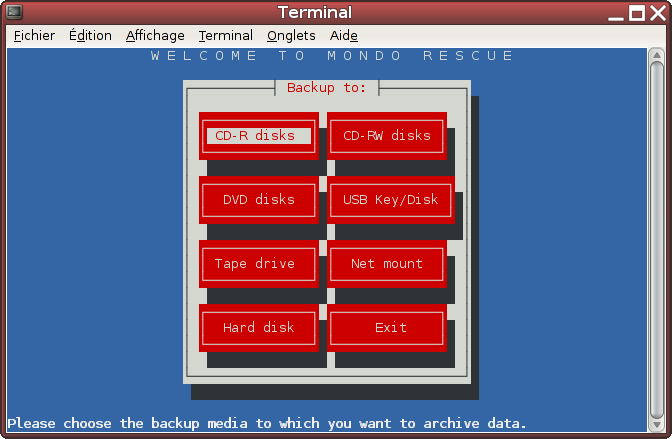 Pour restaurer votre système, il suffit de redémarrer à partir du CD ou de la disquette créé et Mondorescue restaure automatiquement votre système.