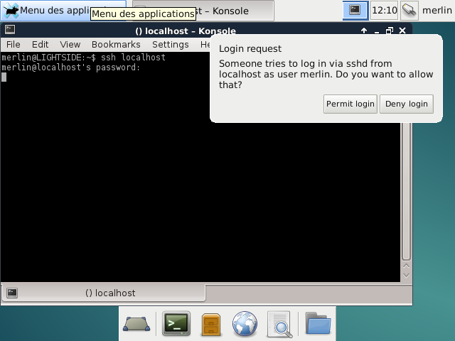 Ici le module pam-dbus va toujours envoyer un message “dbus” à tous les utilisateurs connectés localement pour autoriser ou non la connexion ssh à votre machine.