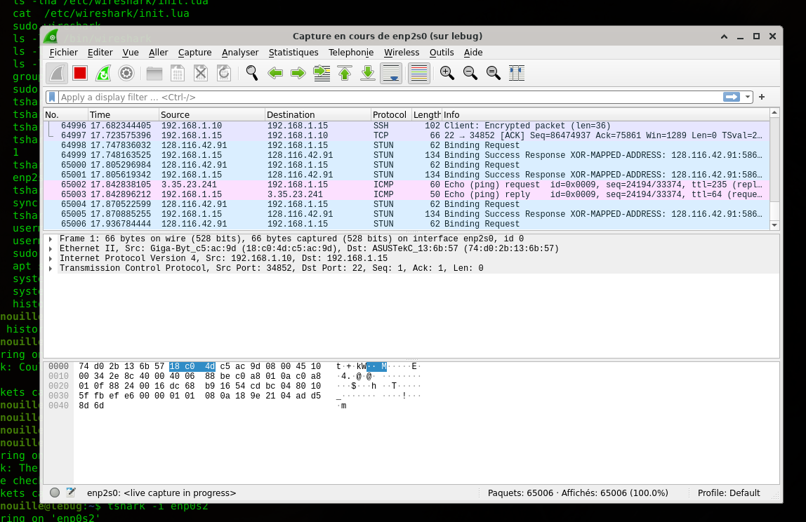 apt install wireshark wireshark-qt tshark