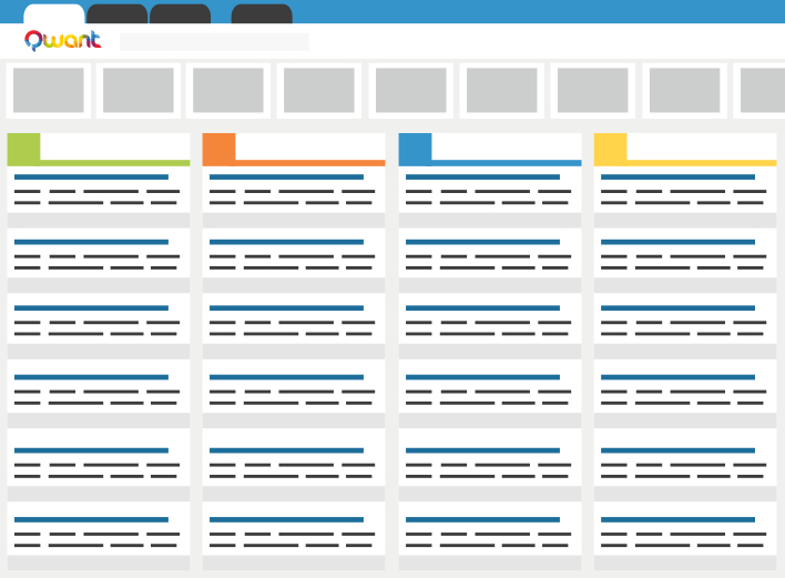 Qwant propose 3 vues différentes pour afficher les résultats. La vue par défaut en colonnes (par défaut), la vue en listes et la vue en mosaïque.