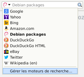 Il est possible de lancer une recherche rapide depuis la barre d'URL avec n'importe quel moteur. Pour cela, il faut configurer les moteurs de recherche qui seront utilisés.