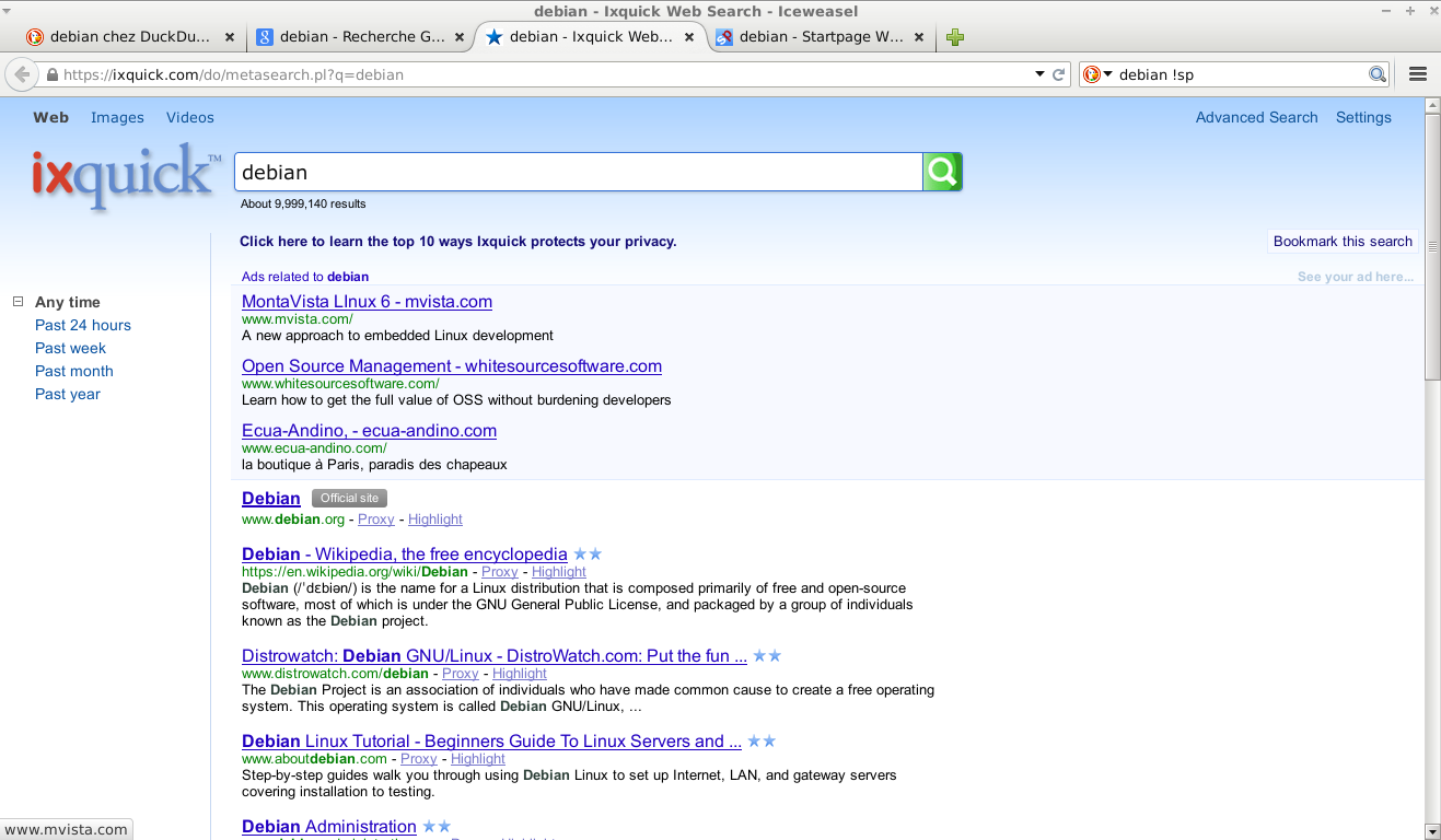 Si DuckDuckGo n'affiche pas de bons résultats vous pouvez faire appel à d'autres moteurs de recherche comme Ixquick, Qwant, au pire Google mais bien plus encore.