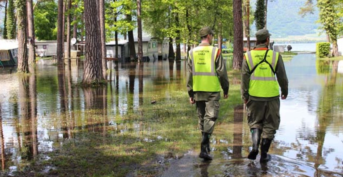 En appui à la police, la PCI VD a contribué à l’évacuation et au bouclage des campings de la Menthue à Yvonand et VD8 à Cheseaux-Noréaz. Autres missions assurées par la PCi dans le cadre de cette intervention : exploitation d’une hotline et d’un poste de commandement à l’engagement au profit de l’EMCC, travaux de reconnaissance et de veille technique au profit de l’ECA.