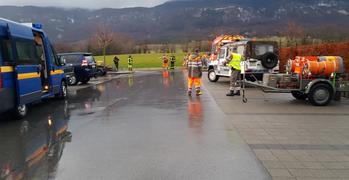 - L’ORPC District Nyon a appuyé les sapeurs-pompiers dans le cadre de mise en place de matériel, tels que boudins et matériel d’éclairage . Les astreints de cette ORPC ont aussi assuré le ravitaillement des sapeurs-pompiers et la pose de sacs de sable dans le secteur de Gland et autour de la piscine de Chéserex.