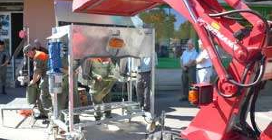 Sous la direction du cap Michel Dubois, le test d’un appareil de remplissage de sacs de sable a permis aux invités, Cdt des régions, Comité Directeur et responsables de l'ECA, de découvrir une machine tout à fait intéressante à différents égards :
