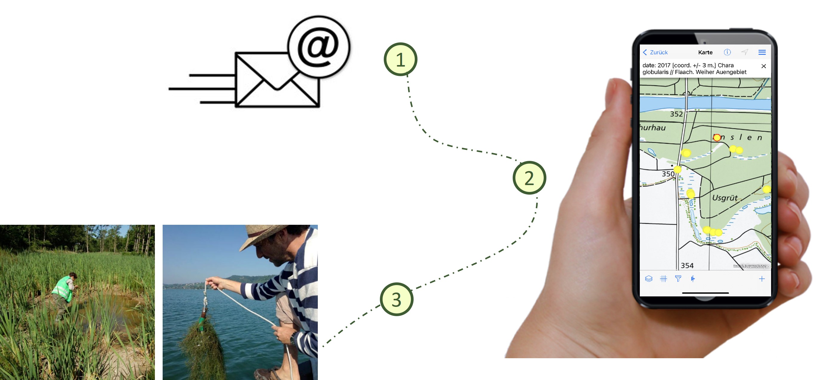 Le but de cette mission est de rechercher activement des characées et de signaler vos observations. Aidez-nous également à retrouver le plus grand nombre possible de sites connus de characées ! Vous n'avez pas besoin d'être un expert en characées, il vous suffit de transmettre une observation de «Characeae» et de collecter un échantillon d'herbier correspondant.