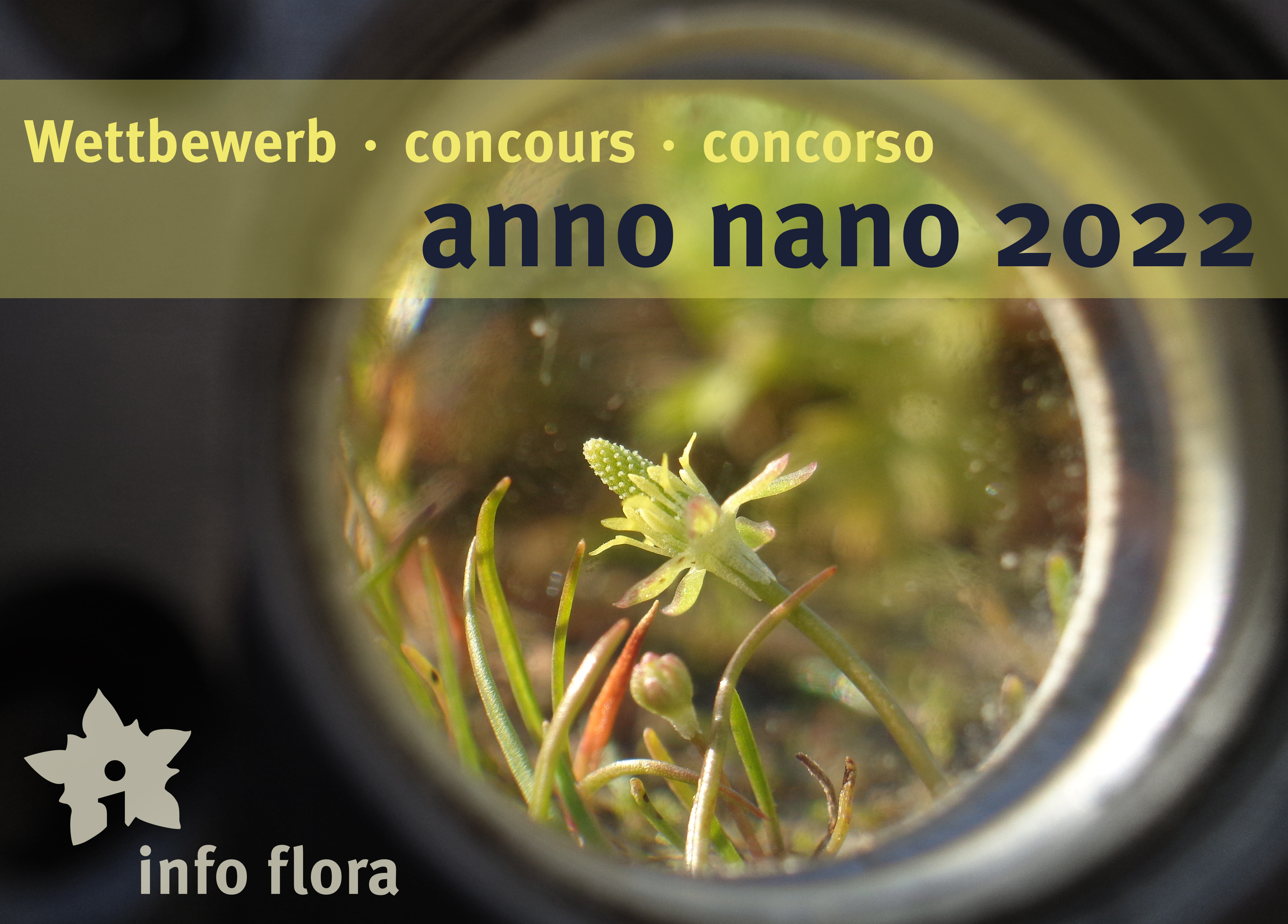 Nano vient du grec ancien nanos, qui signifie « nain » – et ce sont précisément les plantes naines, et plus généralement tout ce qui est petit et qui reste souvent caché, qui étaient au centre de l'« anno nano 2022 », des espèces petites et discrètes, à la végétation peu visible de petites annuelles éphémères (Nanocyperion), aux critères de détermination minuscules ou encore aux outils de grossissement comme la loupe et le binoculaire. Ceux qui se sont déjà égarés en contemplant une fleur de graminée ou des aigrettes à soies plumeuses, ou en cherchant des pores à sécrétion calcaire et des poils étoilés, savent que la beauté se cache souvent dans les détails et qu’une loupe donne un charme insoupçonné à des miniatures inesthétiques au premier abord.